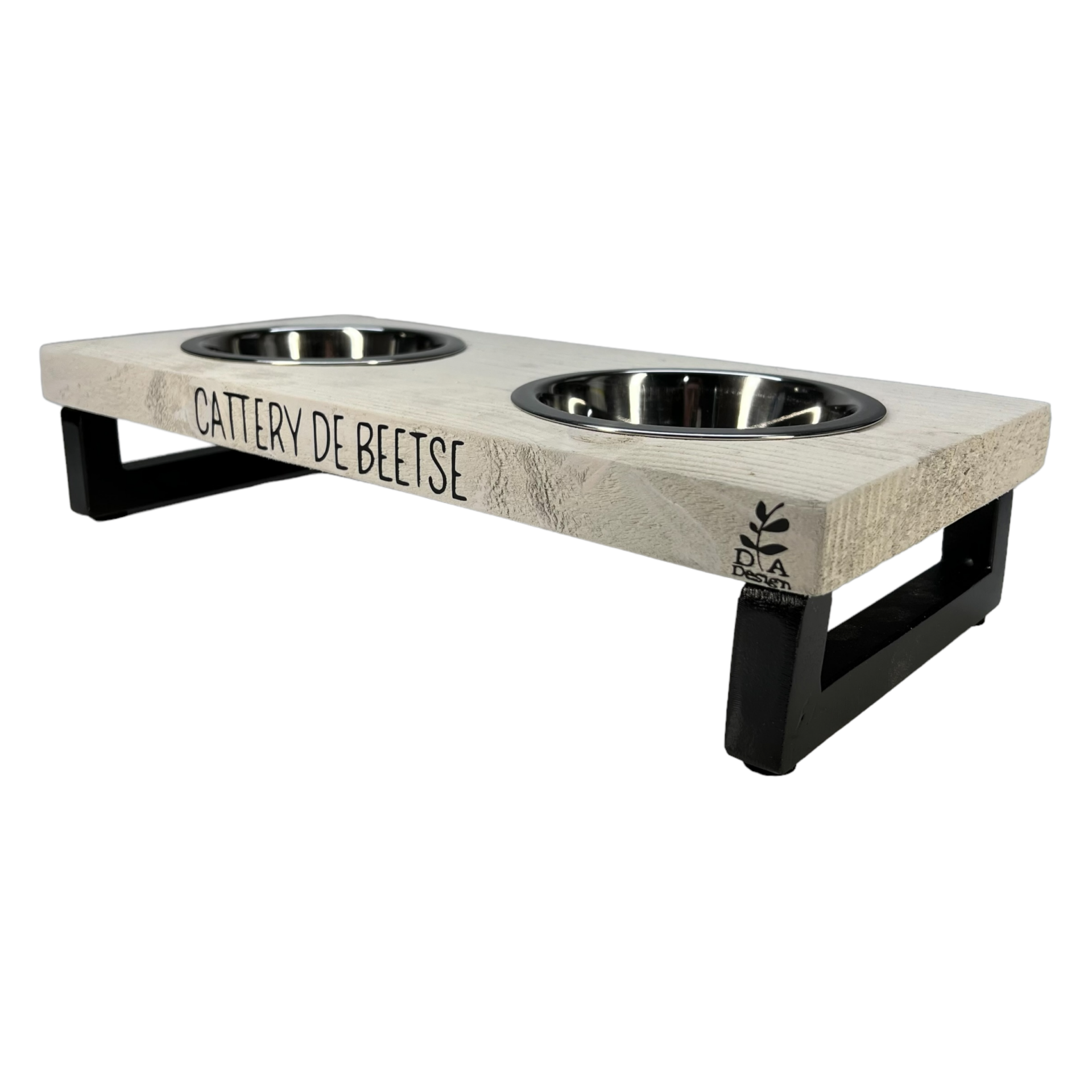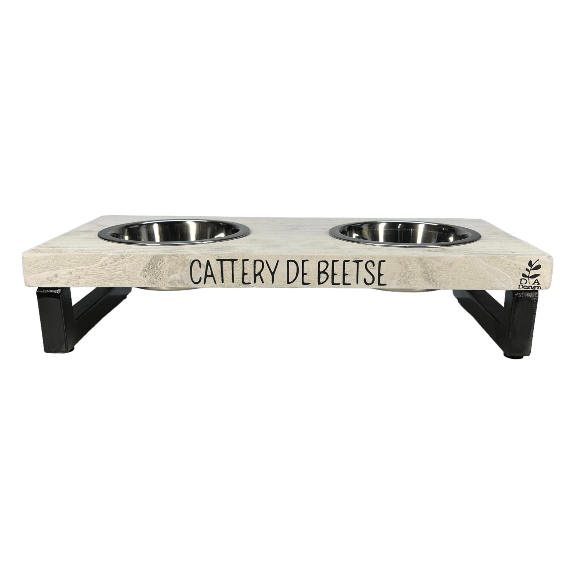 Mooie voerbak met stalen poten.