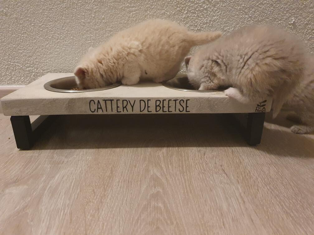 Uw kat of hond hoeft niet te ver te bukken om te eten en te drinken, dit zorgt voor een goede houding van de wat kleinere hond of kat.