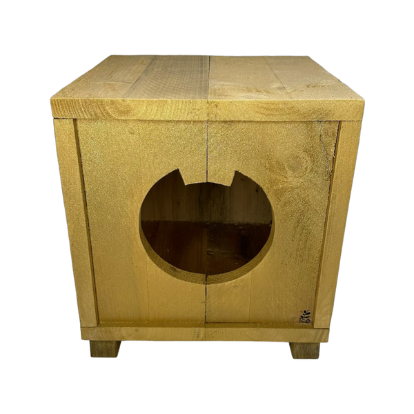 Deze kattenhuis heeft een mooie kleur goud met glitters.