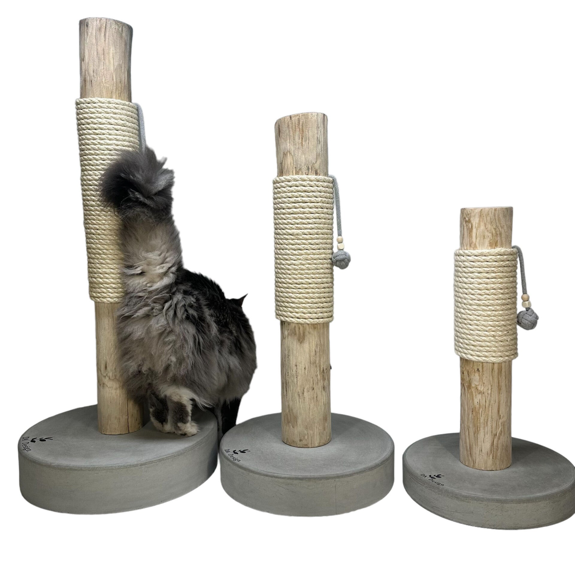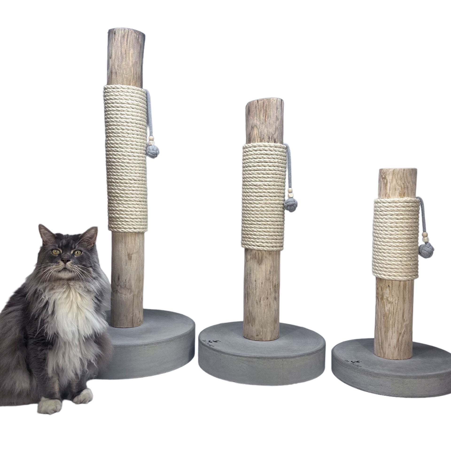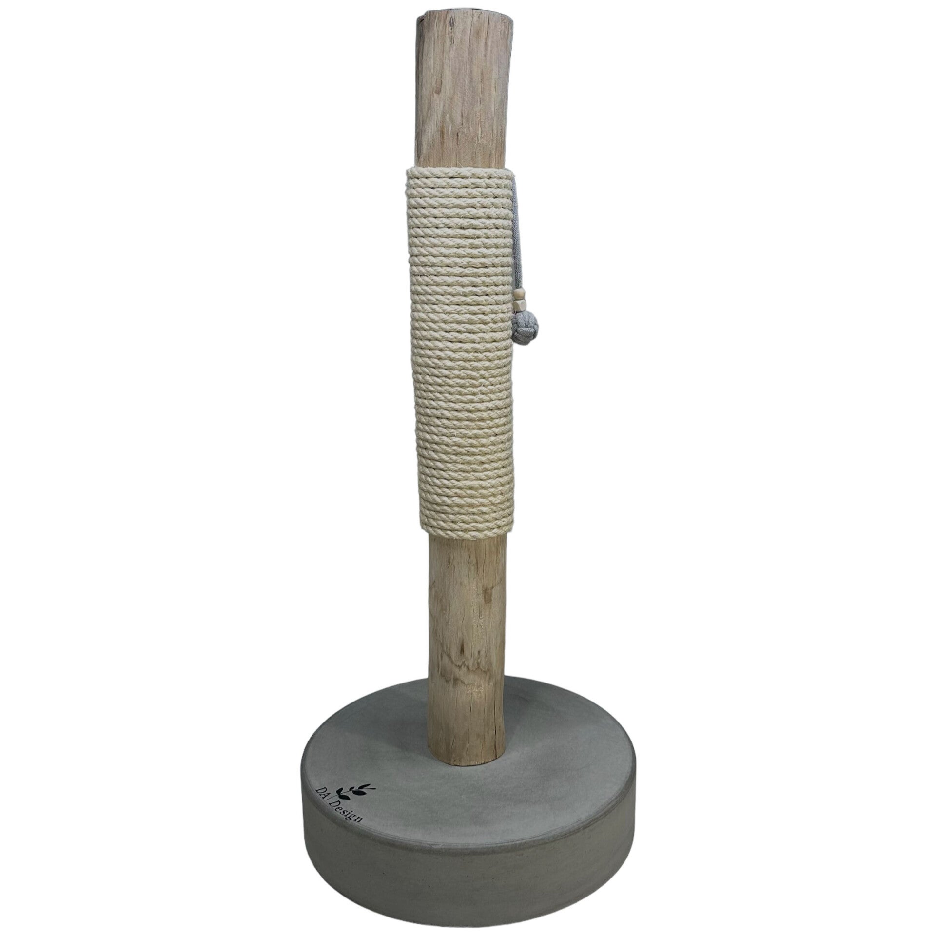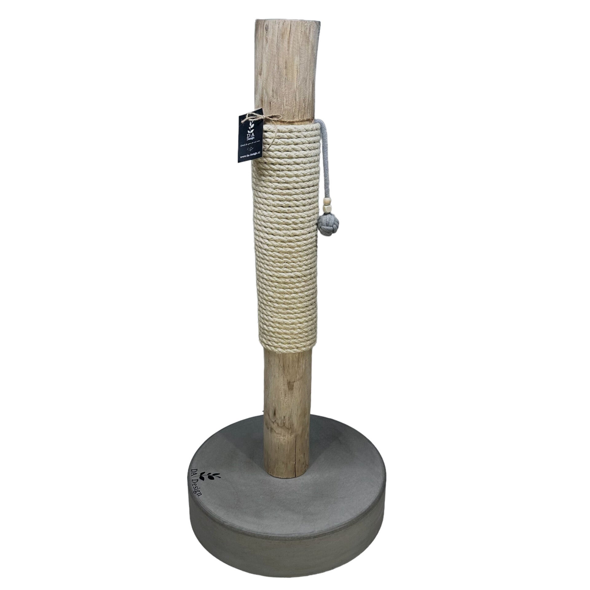 Deze mooie unieke krabpaal heeft een houten stam met er om heen gewikkeld sisal touw van hoogwaardige kwaliteit waar uw kat heel wat uren krab plezier aan heeft. Het mooiste ervan is de super mooie zware betonnen voet die eronder zit voor de looks maar natuurlijk het belangrijkste het gewicht.