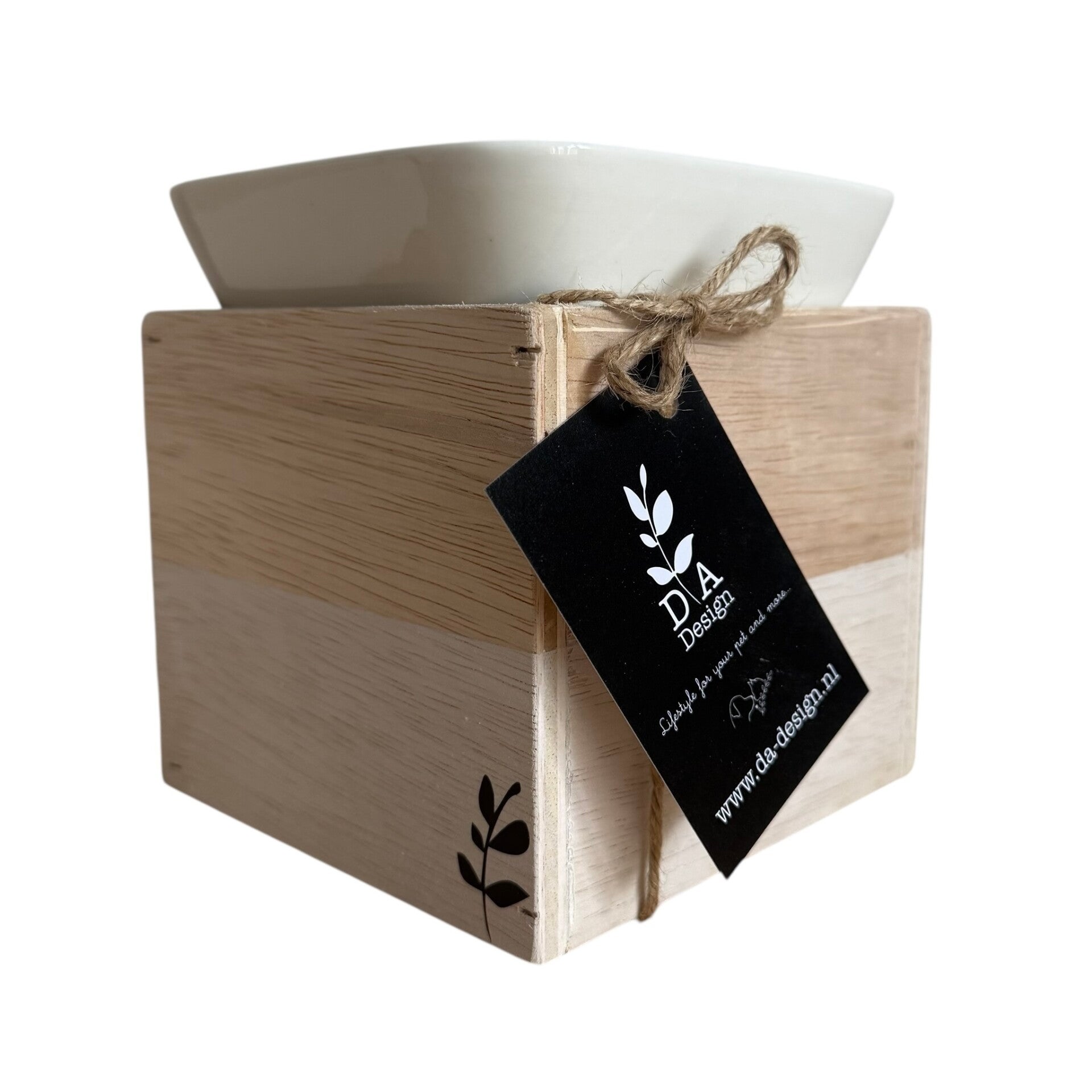 Onze houten vierkante voerbak met porseleinen kom is een combinatie van functionaliteit, stijl en natuurlijke materialen!