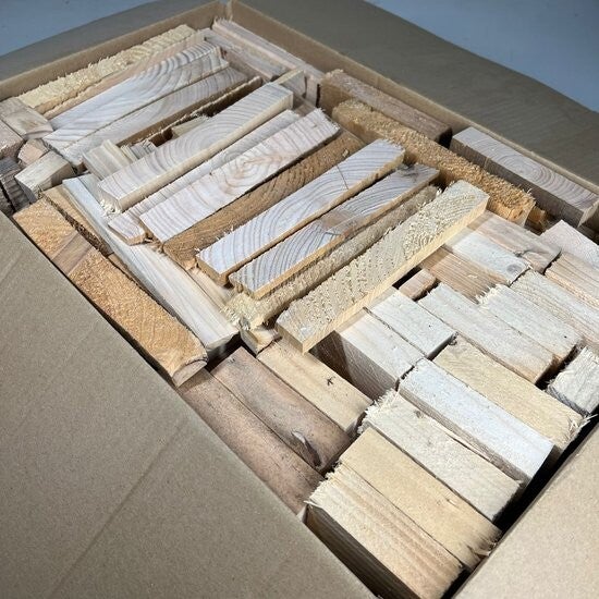 Per verpakking ontvangt u circa 15 kg hout, geleverd in een stevige doos van 55 × 35 × 20 cm.
