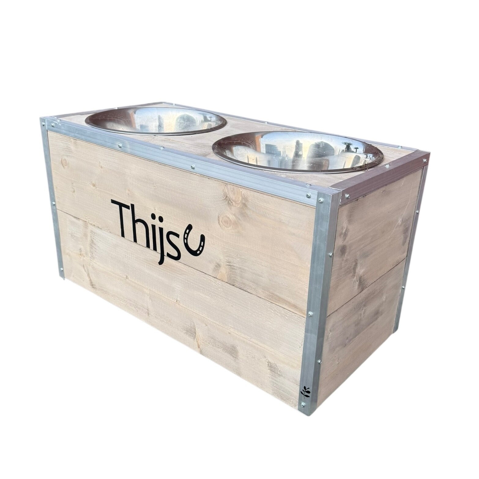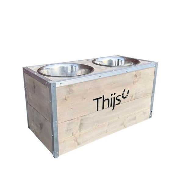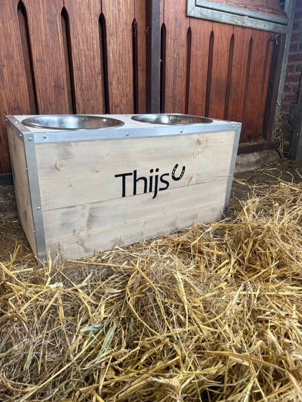 De voerbak is gemaakt van hoogwaardig steigerhout, afgewerkt met stalen strips voor extra bescherming en stevigheid. De robuuste uitstraling past perfect in iedere paardenstal.