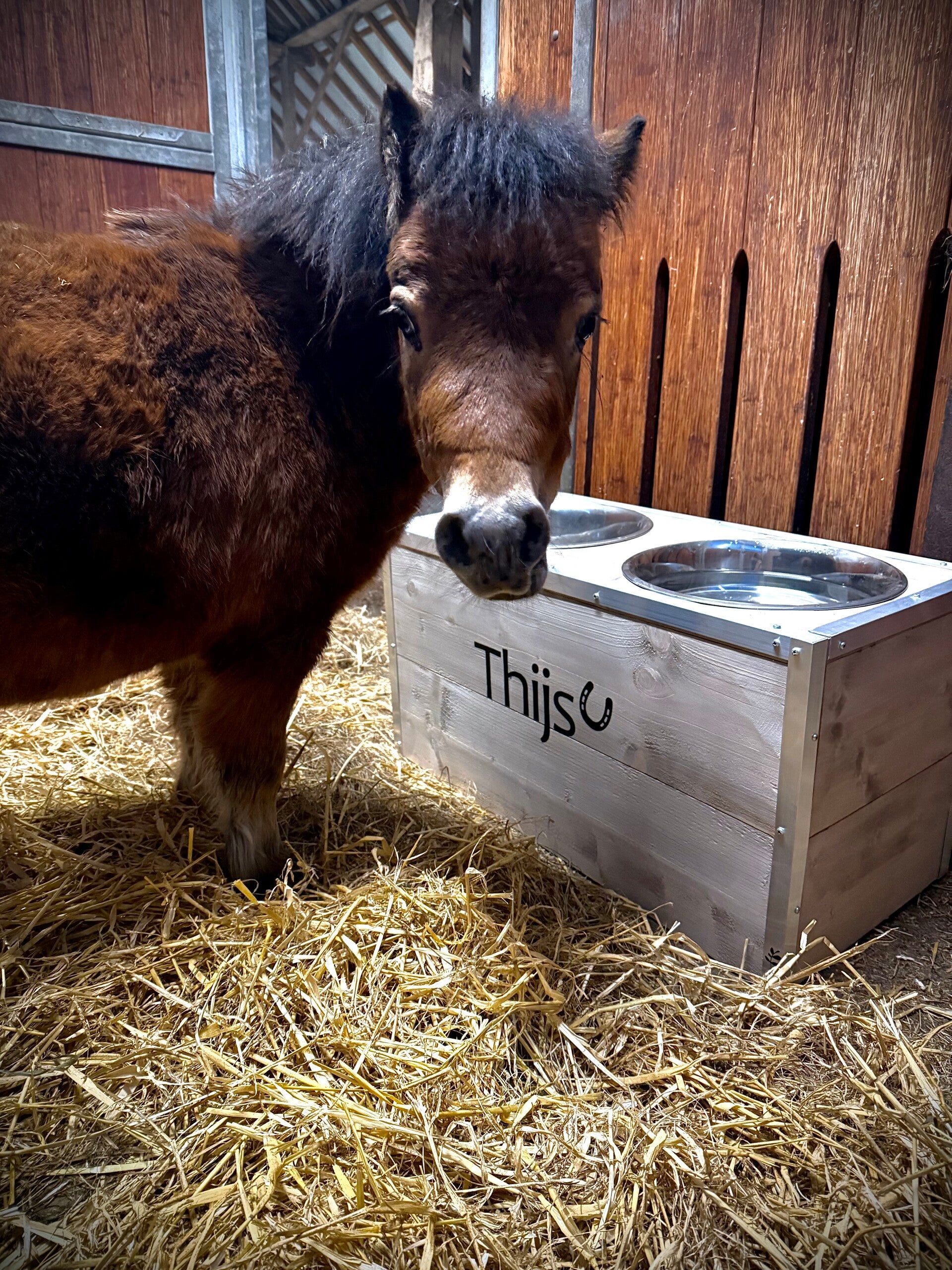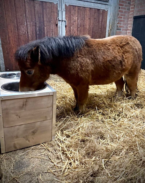 In veel stallen zijn standaard eet- en drinkbakken op hoogte geplaatst voor paarden en pony’s, maar niet voor Shetlanders. Hierdoor moeten zij vaak oncomfortabel eten of drinken. Deze voerbak biedt hiervoor een praktische en duurzame oplossing.