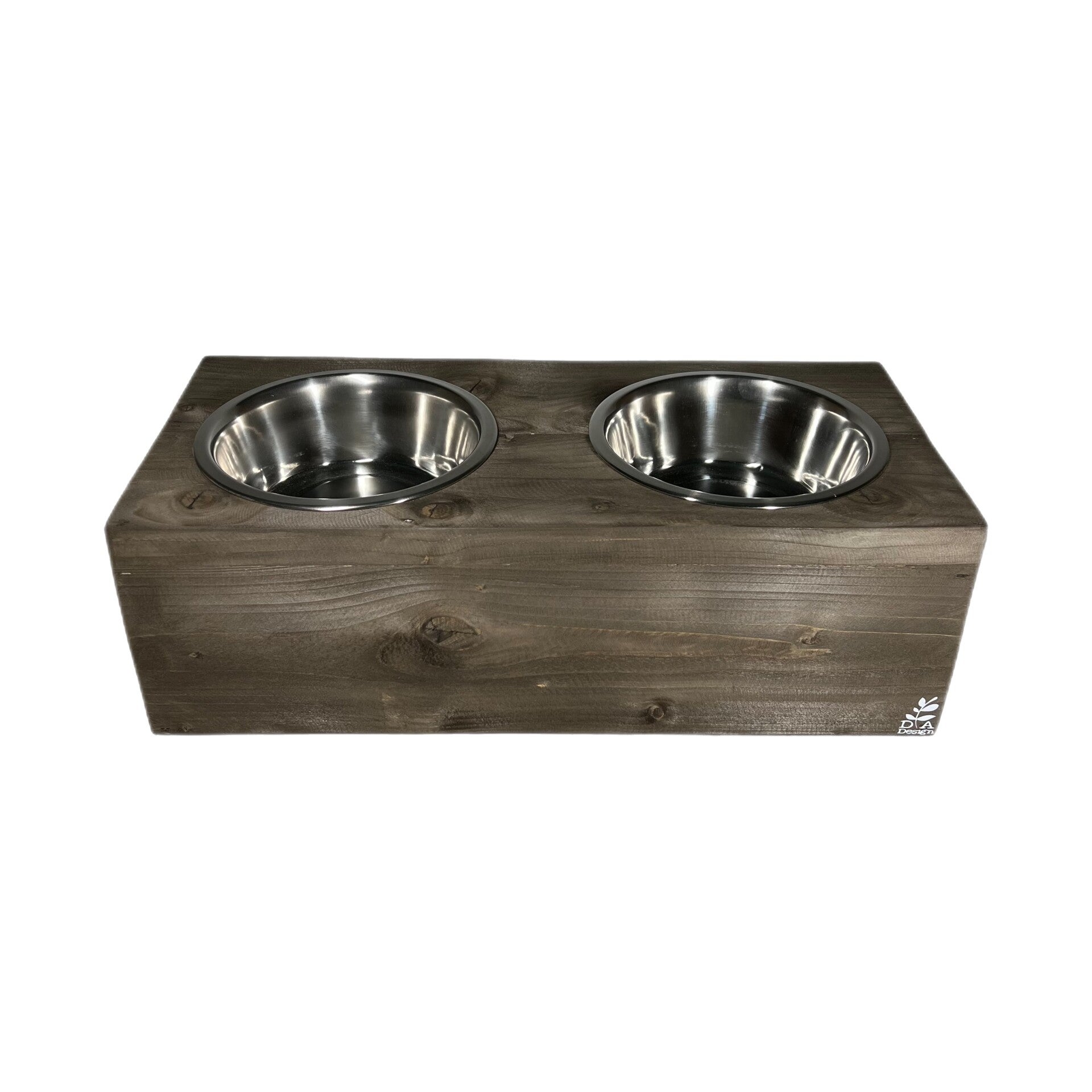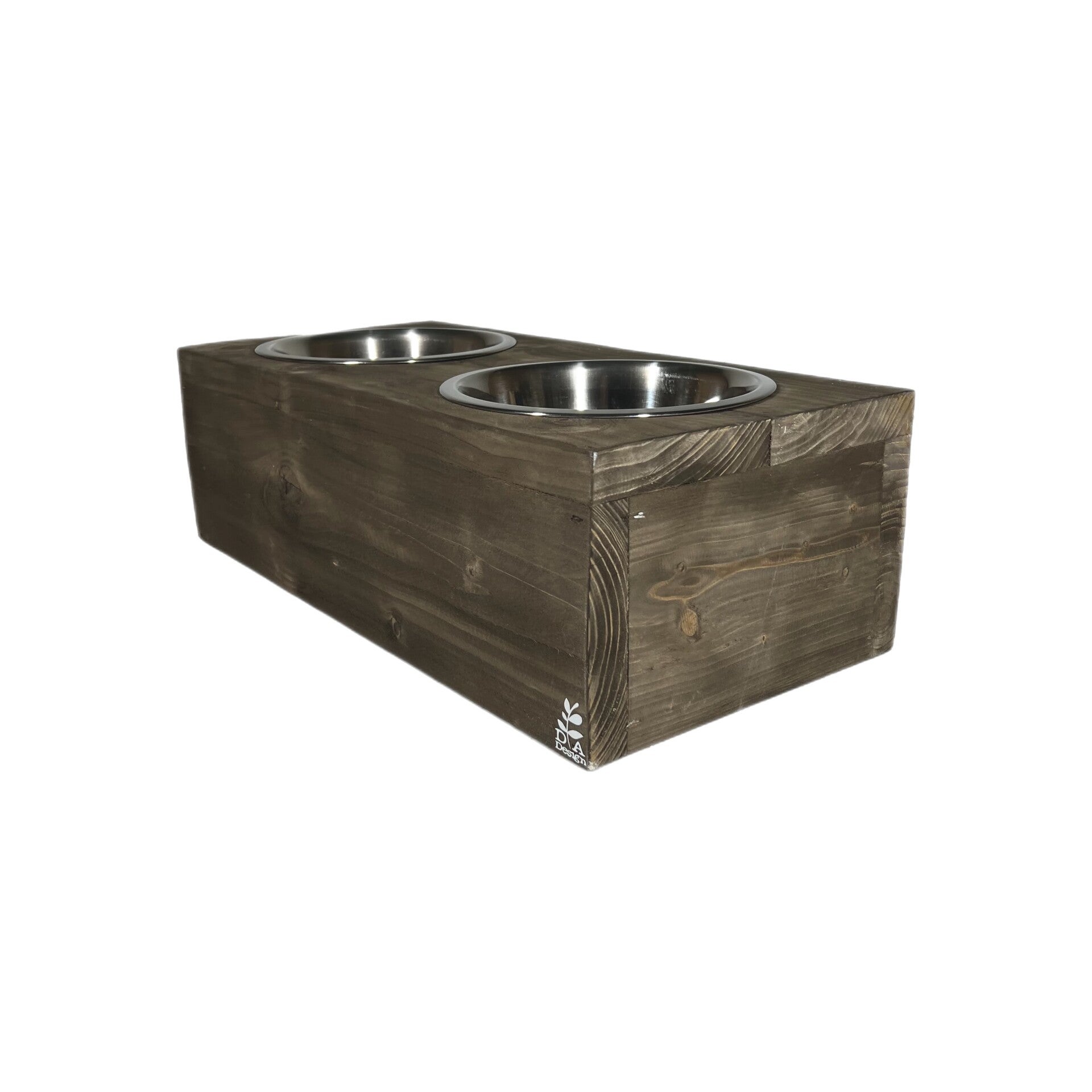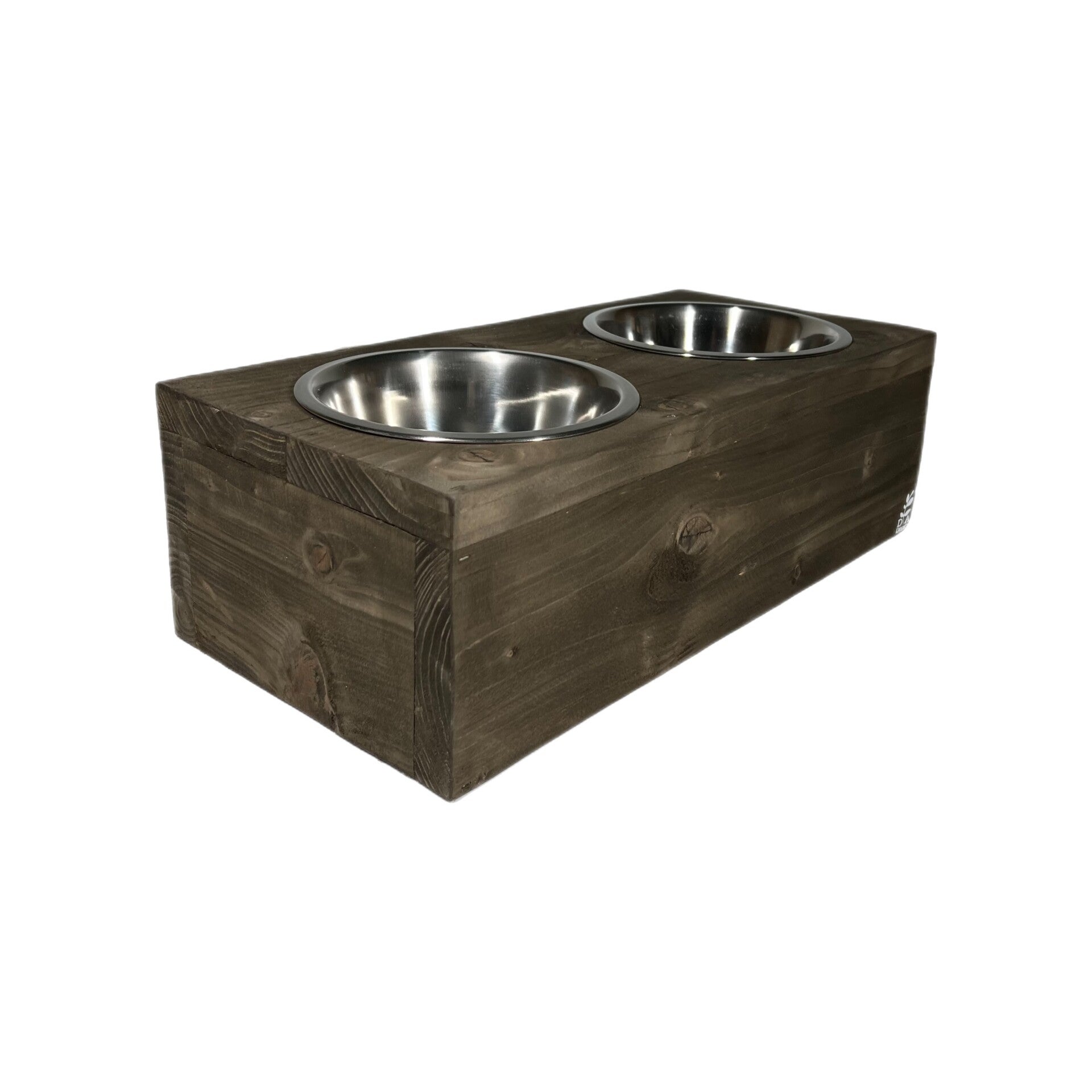 Mooie steigerhouten voerbak voor een hond.