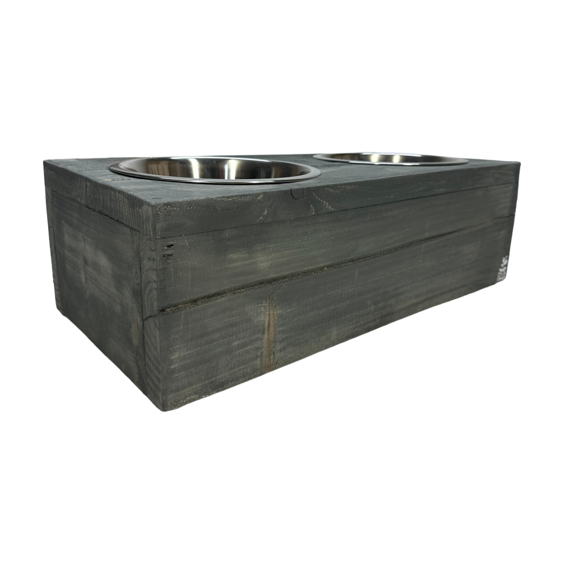 Mooie voerbak van steigerhout in de kleur Antraciet met een leuke prijs.