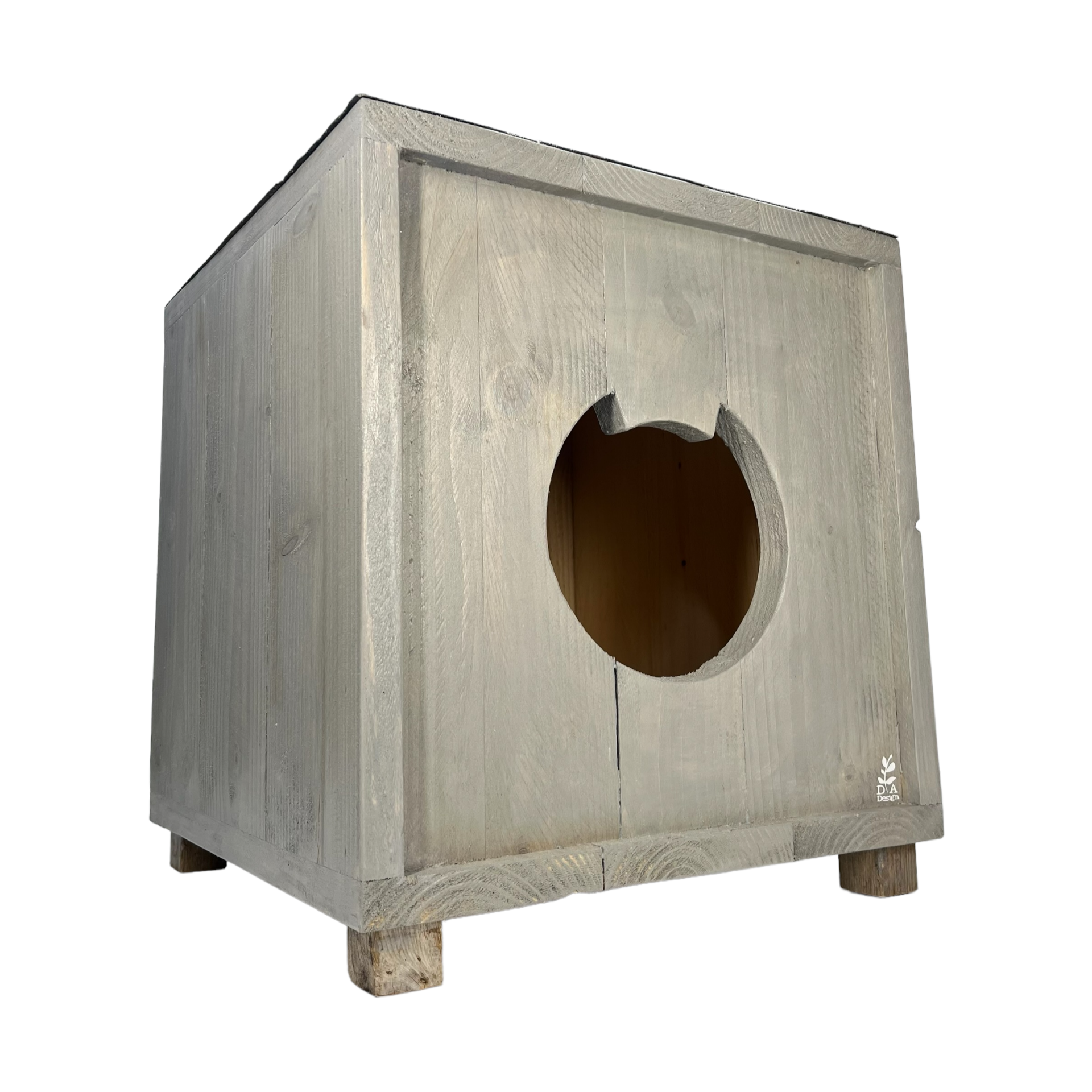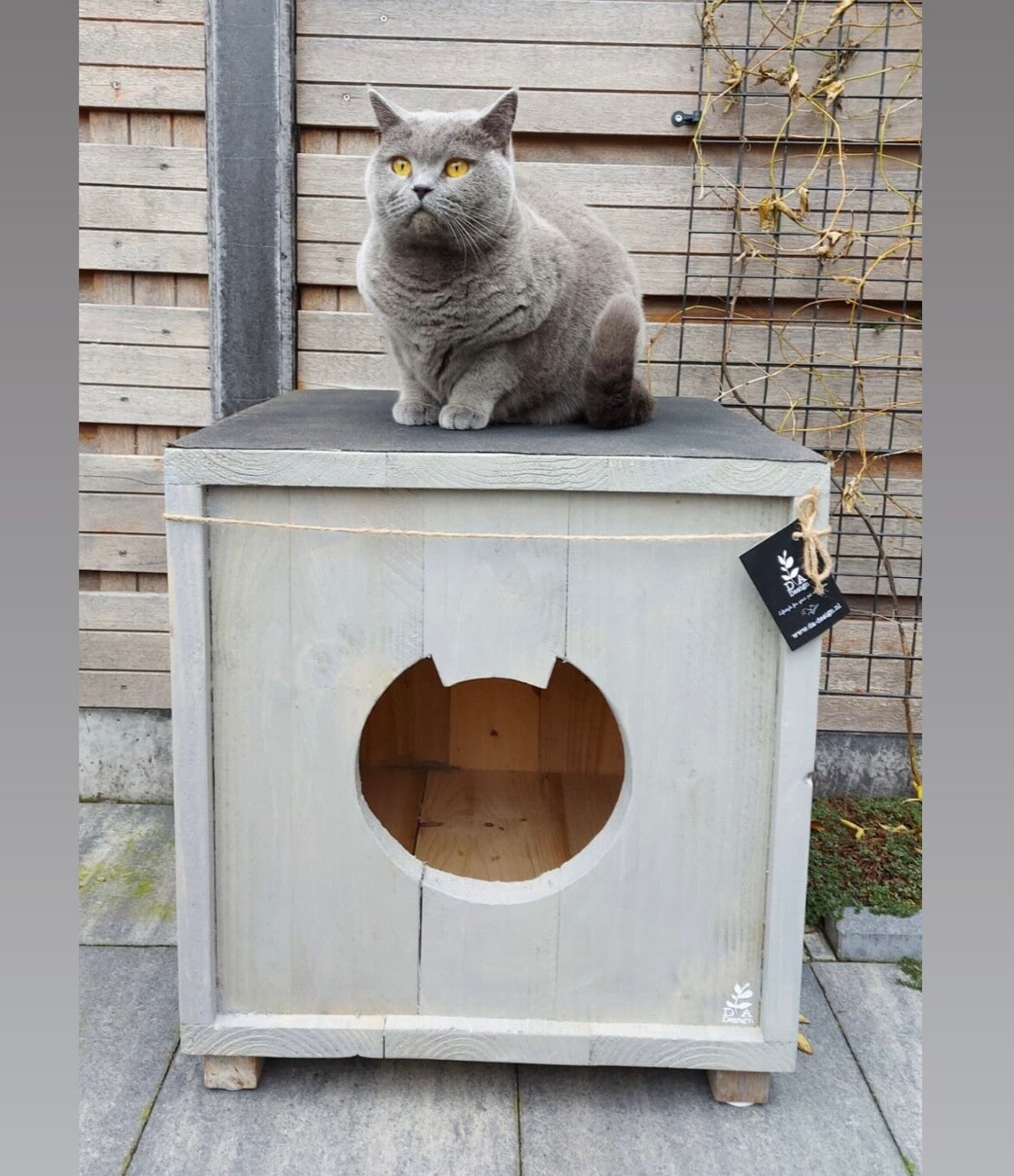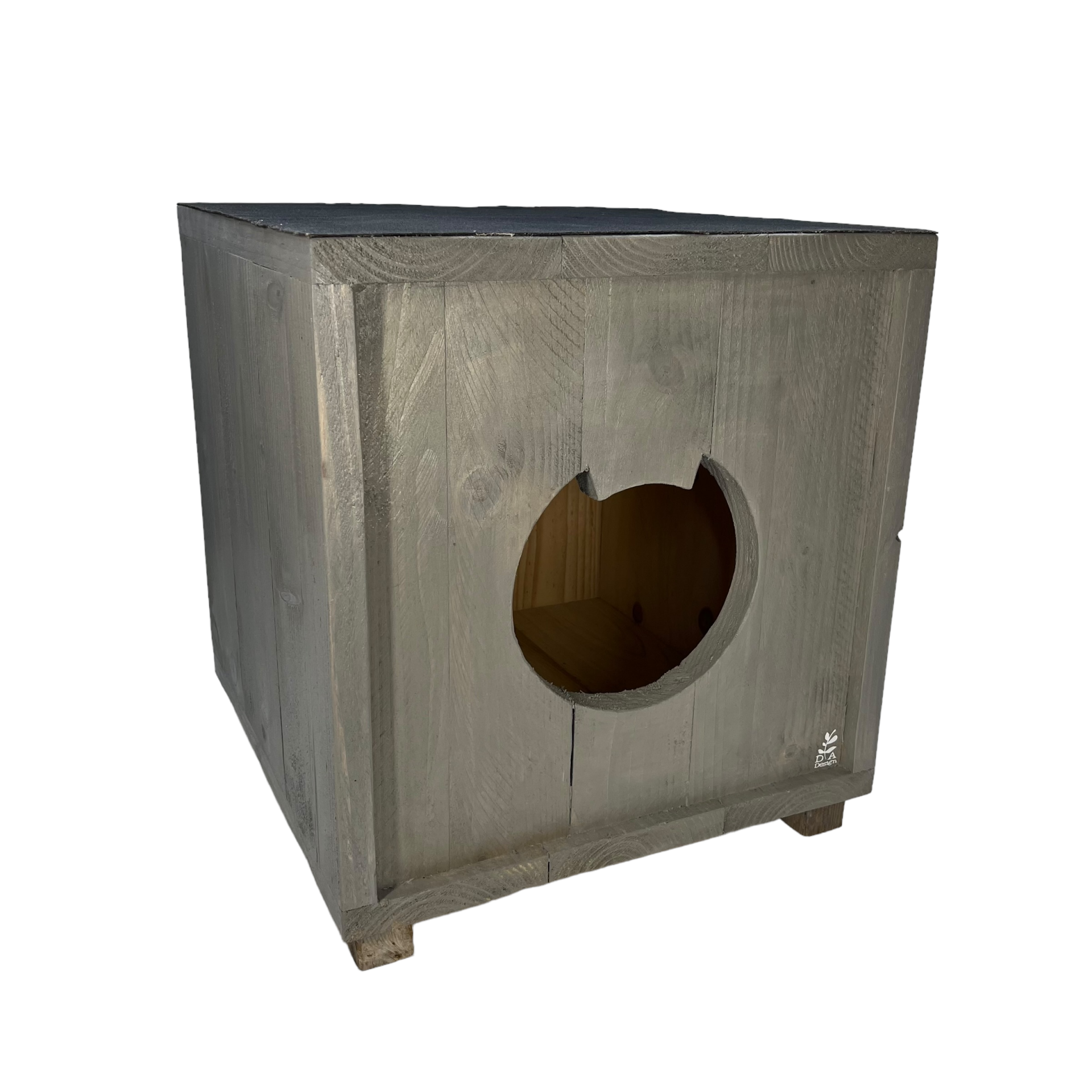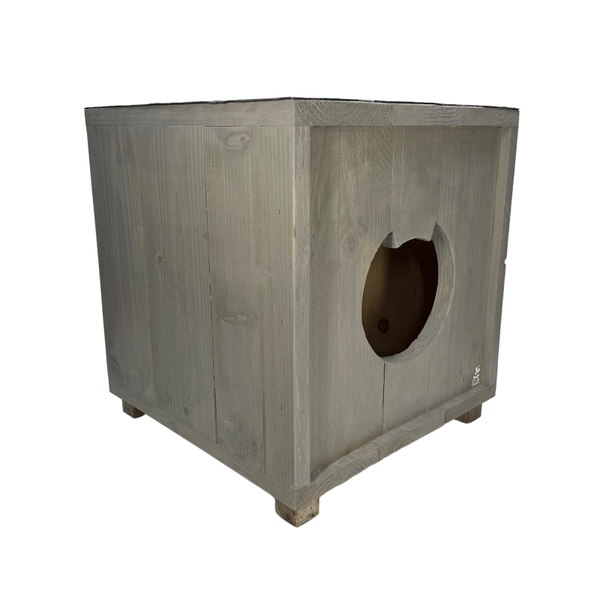 Een mooi kattenhuisje voor buiten in de kleur Grey Wash.