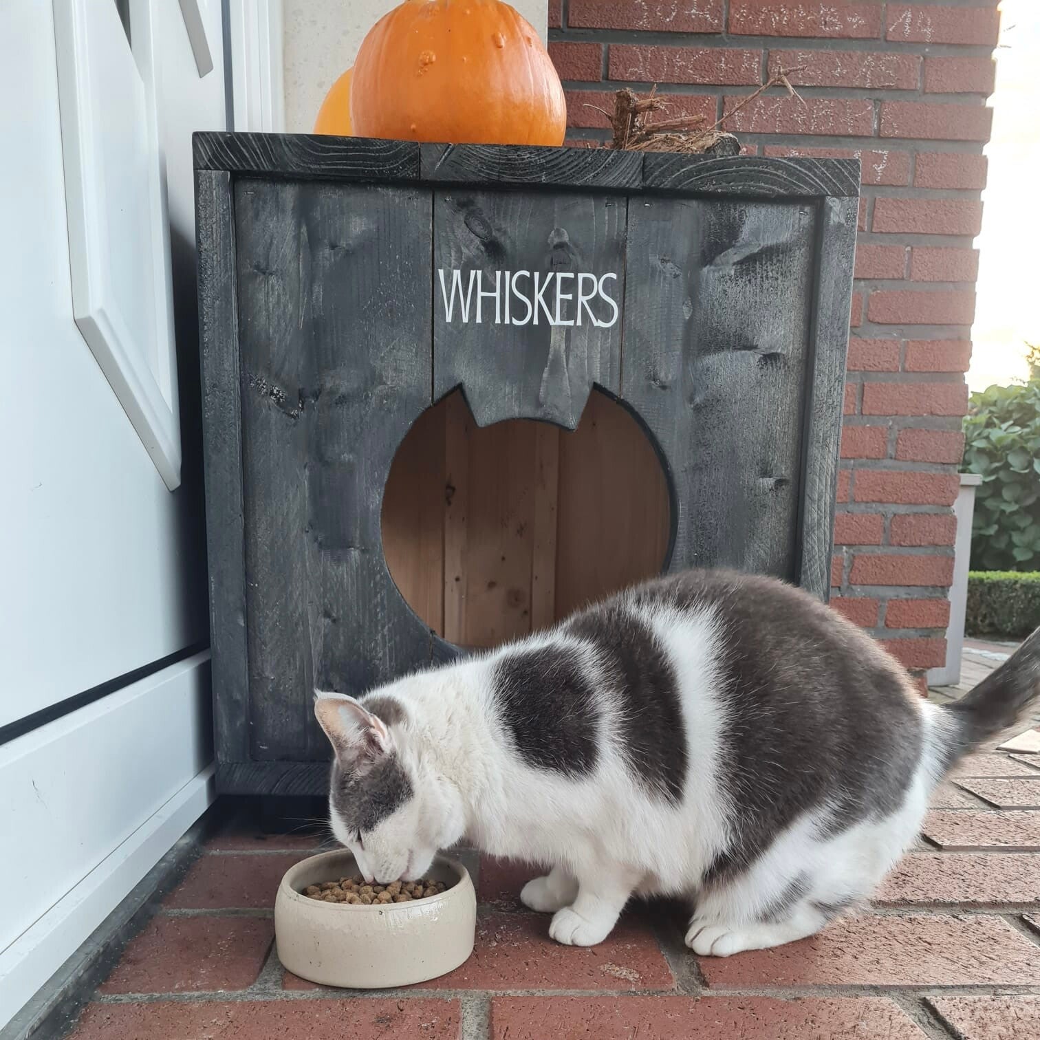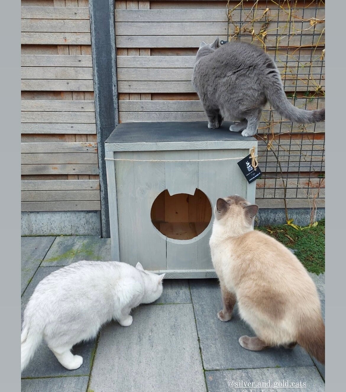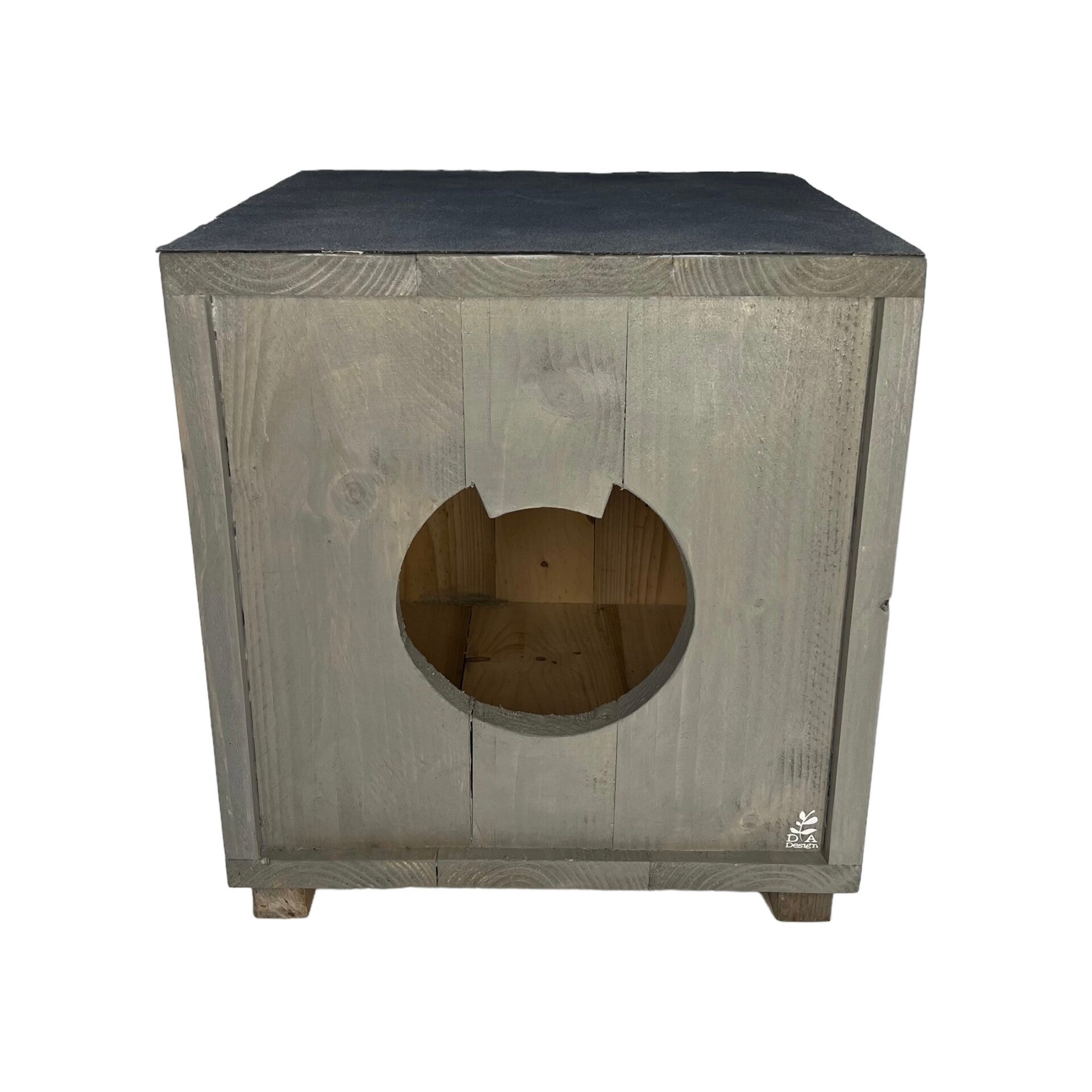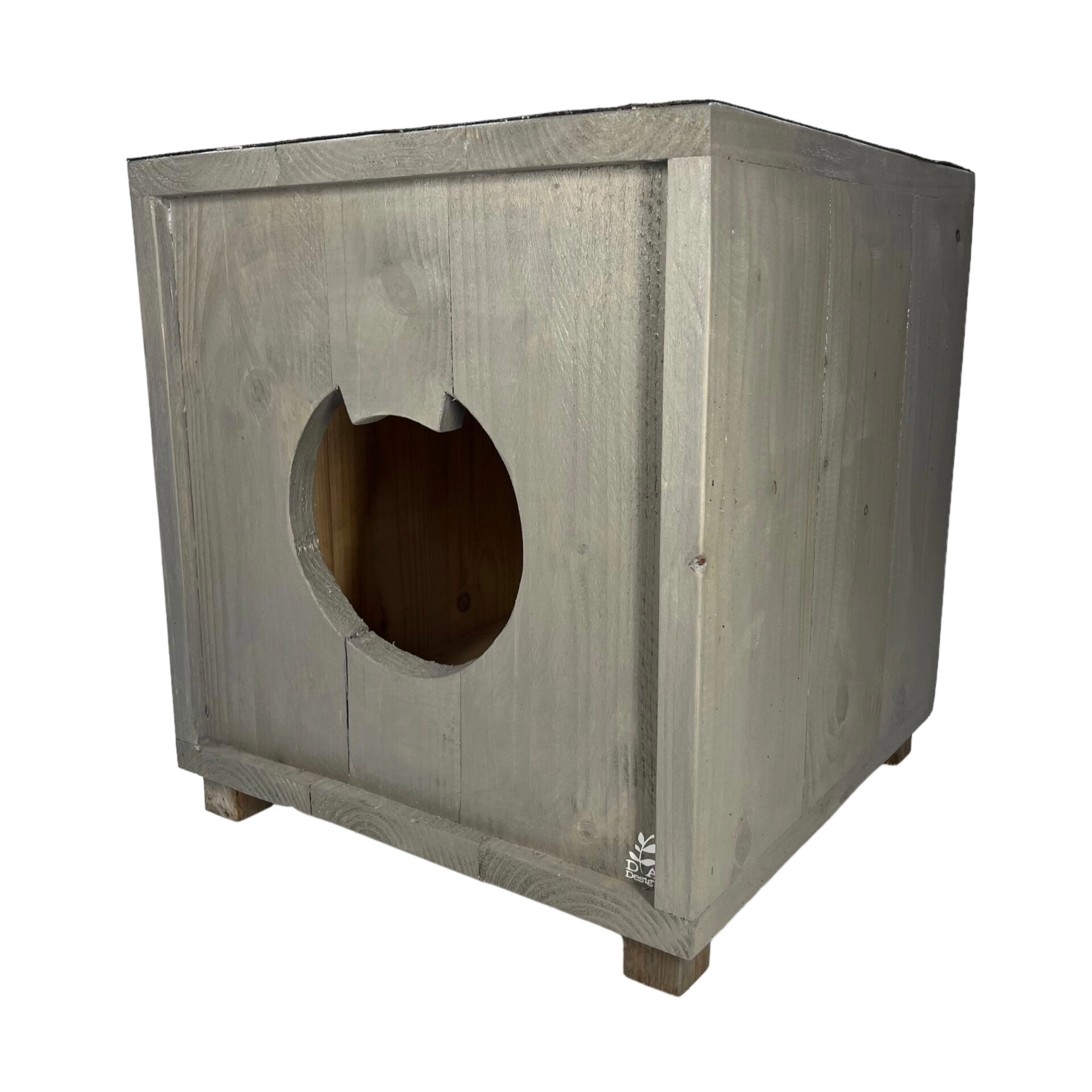 Een mooi kattenhuisje voor buiten in de kleur Grey Wash.