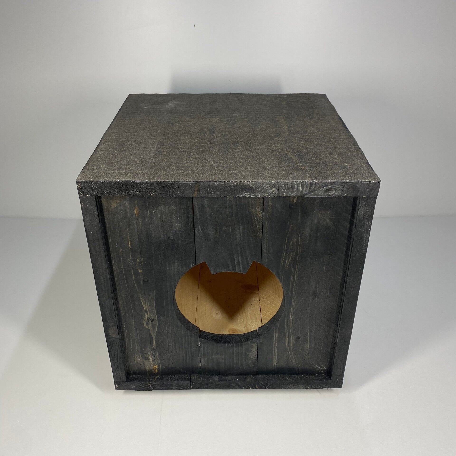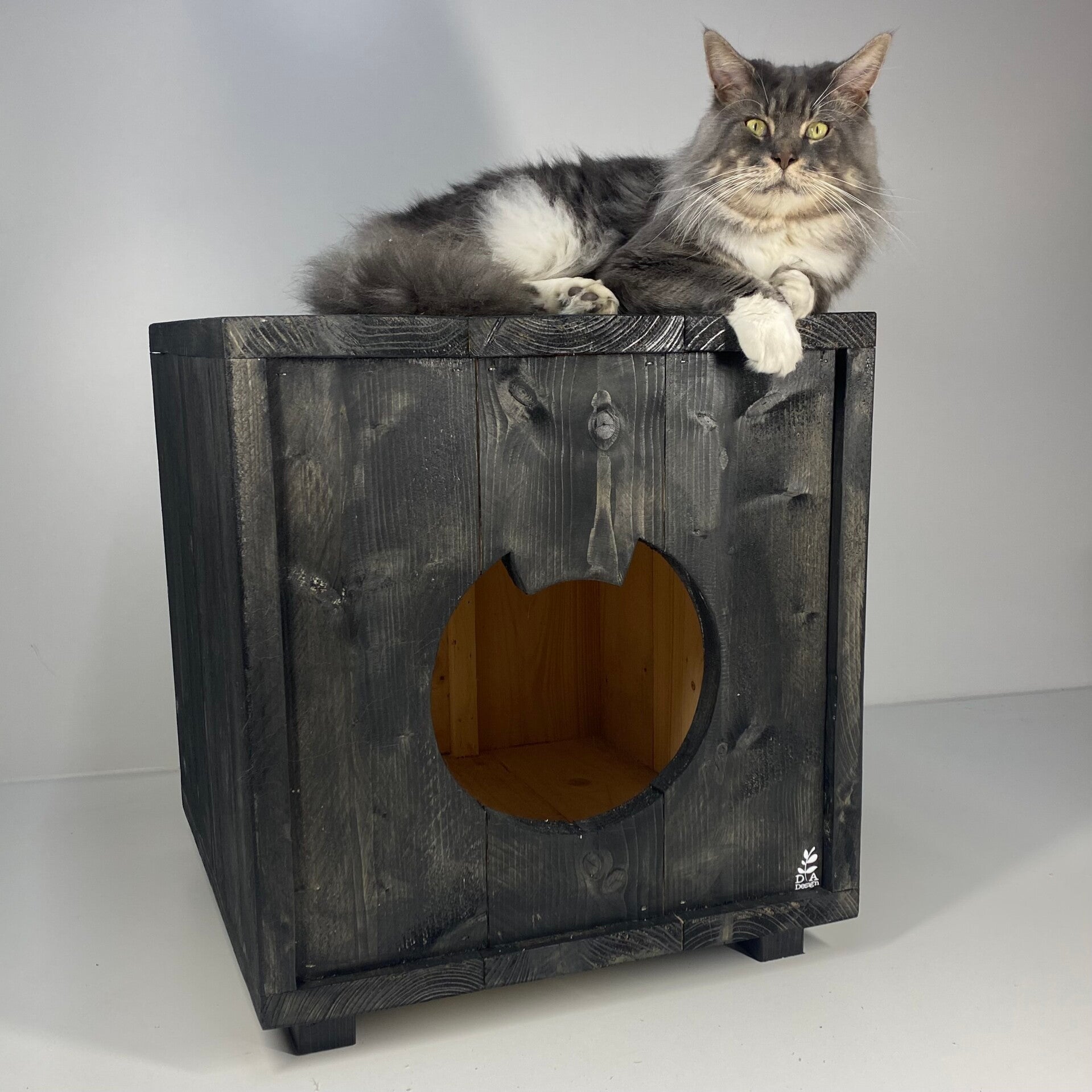 Een mooi kattenhuisje voor buiten in de kleur Black Wash.