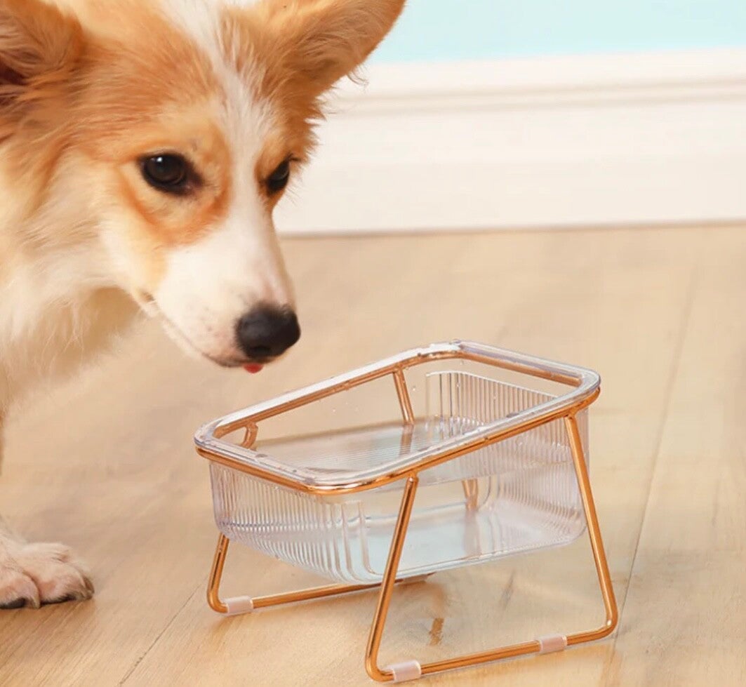 Ontdek deze stijlvolle en praktische voerbakje voor katten (of kleine honden)! Gemaakt van hoge kwaliteit ABS en met een anti-slip bodem. De bakjes worden verhoogd door de ijzeren houder waardoor je huisdier automatisch langzamer zal eten en de kans op braken wordt zo verkleind. Je viervoeter trager doen eten bevordert de spijsvertering en resulteert in een betere algehele gezondheid. Alléén maar voordelen dus!