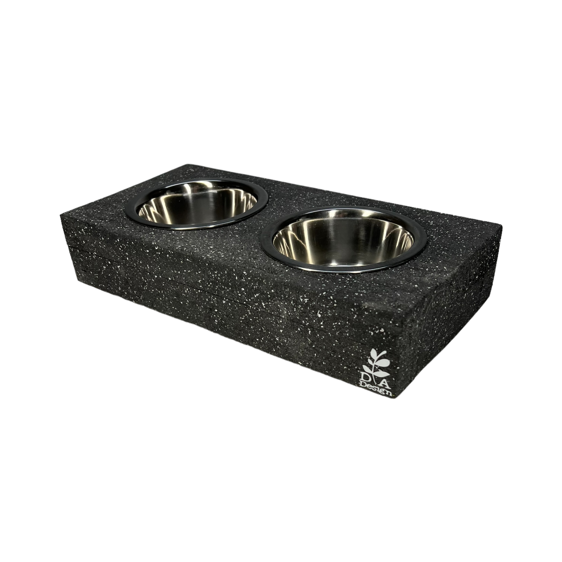 Deze voerbak heeft een steeneffect in de kleur grafiet, met een soort van witte spetters